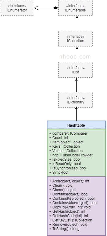 cities.Clear(); //删除所有元素下图说明了Hashtable类的层次结构。