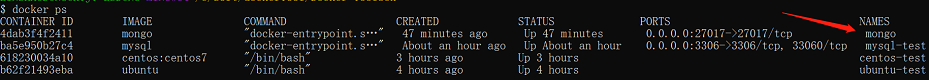 最后我们可以通过 docker ps 命令查看容器的运行信息:
