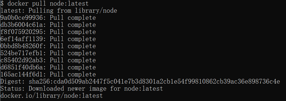在上图中可以看到我们已经安装了最新版本(latest)的 node 镜像。