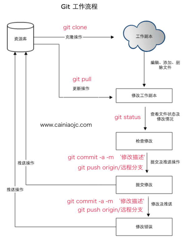 以下为我们通常使用 Git 的工作流程。