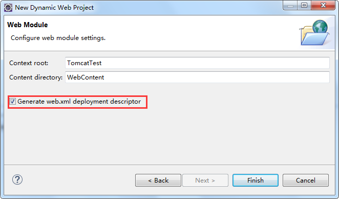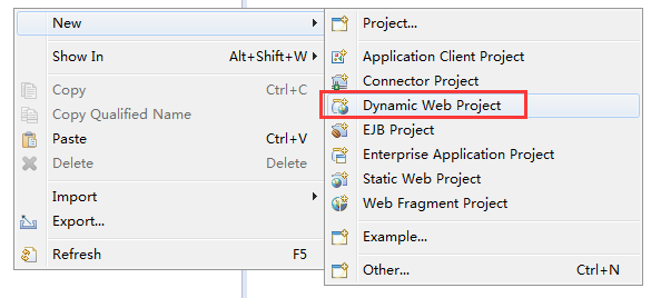 选择 "File-->New-->Dynamic Web Project",创建 TomcatTest 项目: