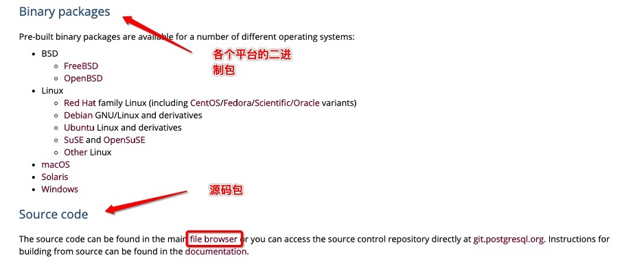 点击上图中的 file browser,我们还能下载 PostgreSQL 最新的源码。