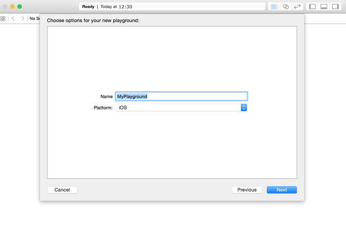 接着 为 playground 设置一个名字并选择 iOS 平台。